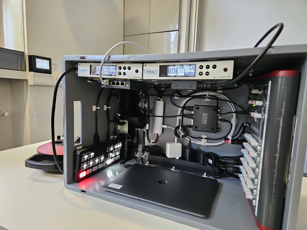 In den beiden flachen Cases befinden sich die Kabel zum Anschluss des Kits an die Raumtechnik.