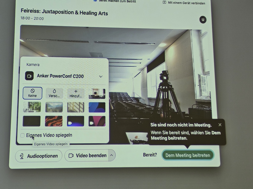Der zusätzliche Bildkanal wird genutzt, um externen Speakern ihr Publikum zu zeigen. Dadurch können externe Studenten auch sehen, wer von ihren Komillitonen vor Ort ist.
